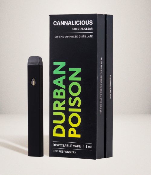 Energising Durban Poison Sativa vape with terpene-enhanced distillate for an uplifting experience.
